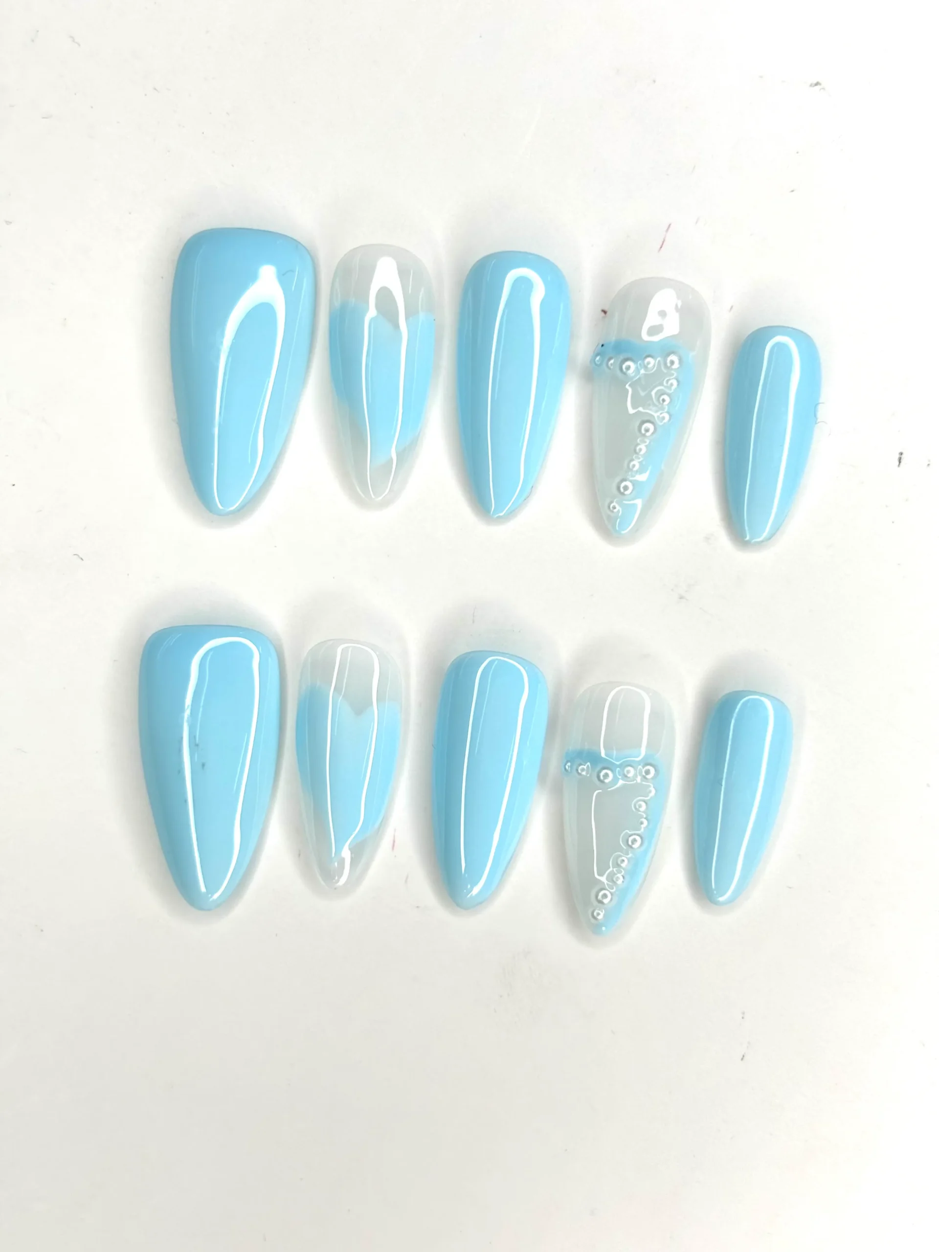 Love how simple yet elegant these press-on nails are. The baby blue tone looks gentle and calming, and the quality feels premium. I received so many compliments wearing them — great for any occasion!