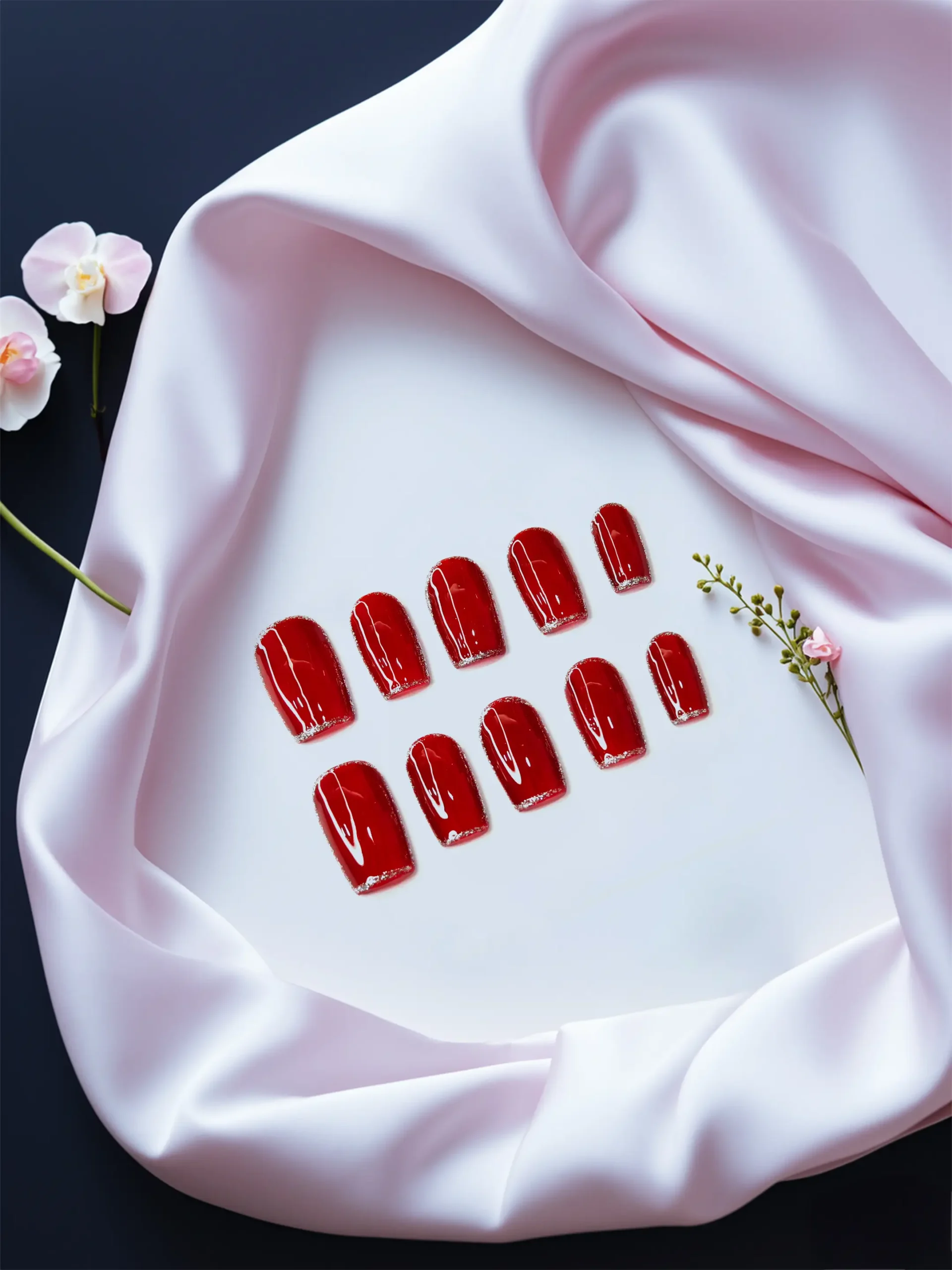 The Amadela Shiny Red Press-On Nails bring bold elegance to your fingertips. Their vivid red color and high-shine finish add instant confidence and style. Whether for a party, a date, or a daily look, these nails make every gesture unforgettable.
